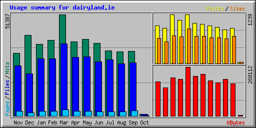 | Hits | Files | Pages | Visits | Sites | KBytes | Visits | Pages | Files | Hits | |